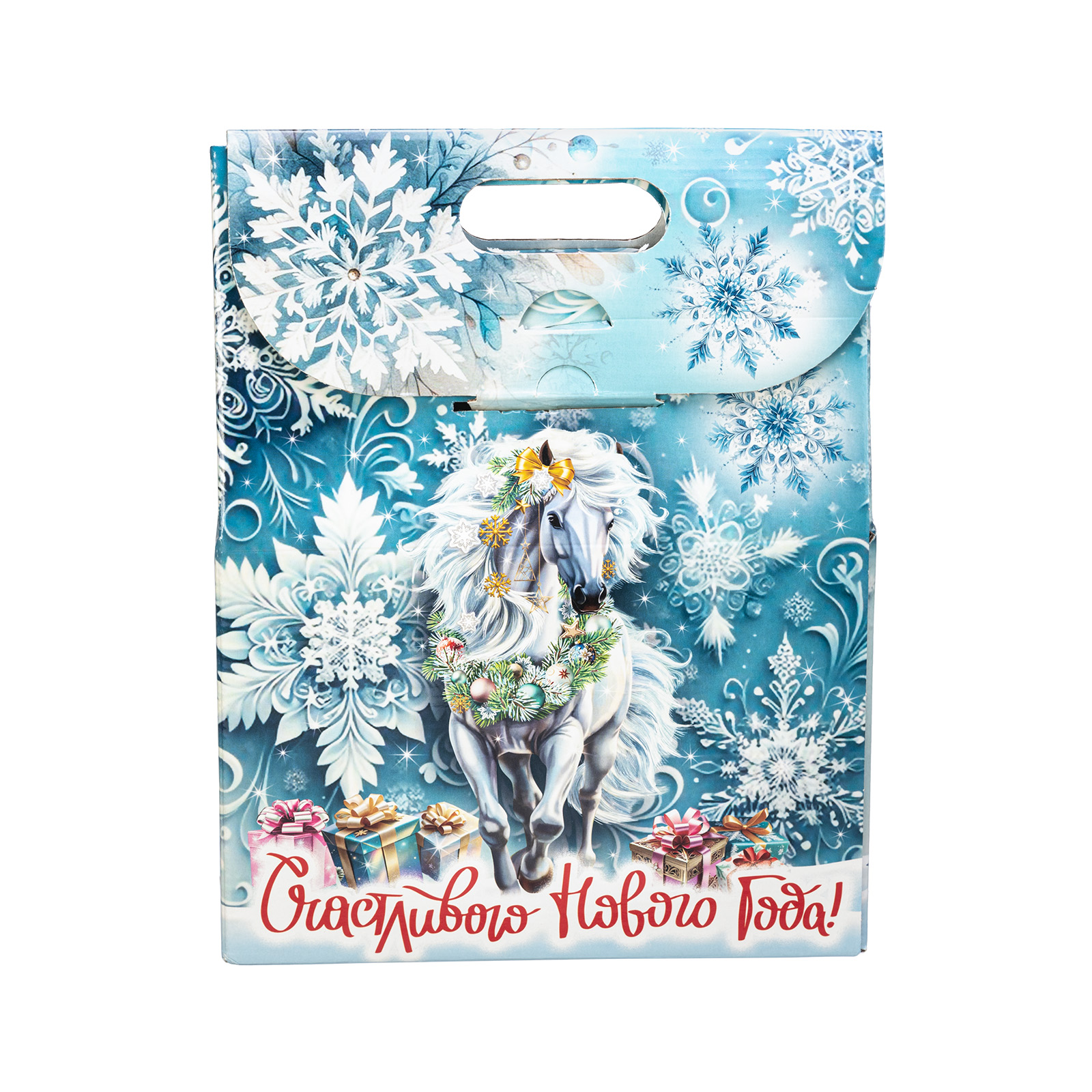 Новогодние сладкие подарки с изображением символа года - это нестареющая классика. Подарочный набор “Белоснежная” - это идеальное сочетание креативной подарочной упаковки и вкусного разнообразного конфетного состава. Подарок представляет собой небольшую картонную сумочку с изображением белой волшебной лошадки на фоне зимнего леса. Снизу красуется контрастное поздравление, а наверху есть удобная ручка. Внутри содержатся вкусные лакомства, с которыми каждое праздничное чаепитие приобретет еще более торжественное и веселое настроение. Подарочный набор - универсален. Его можно вручить как ребенку, так и взрослому.
