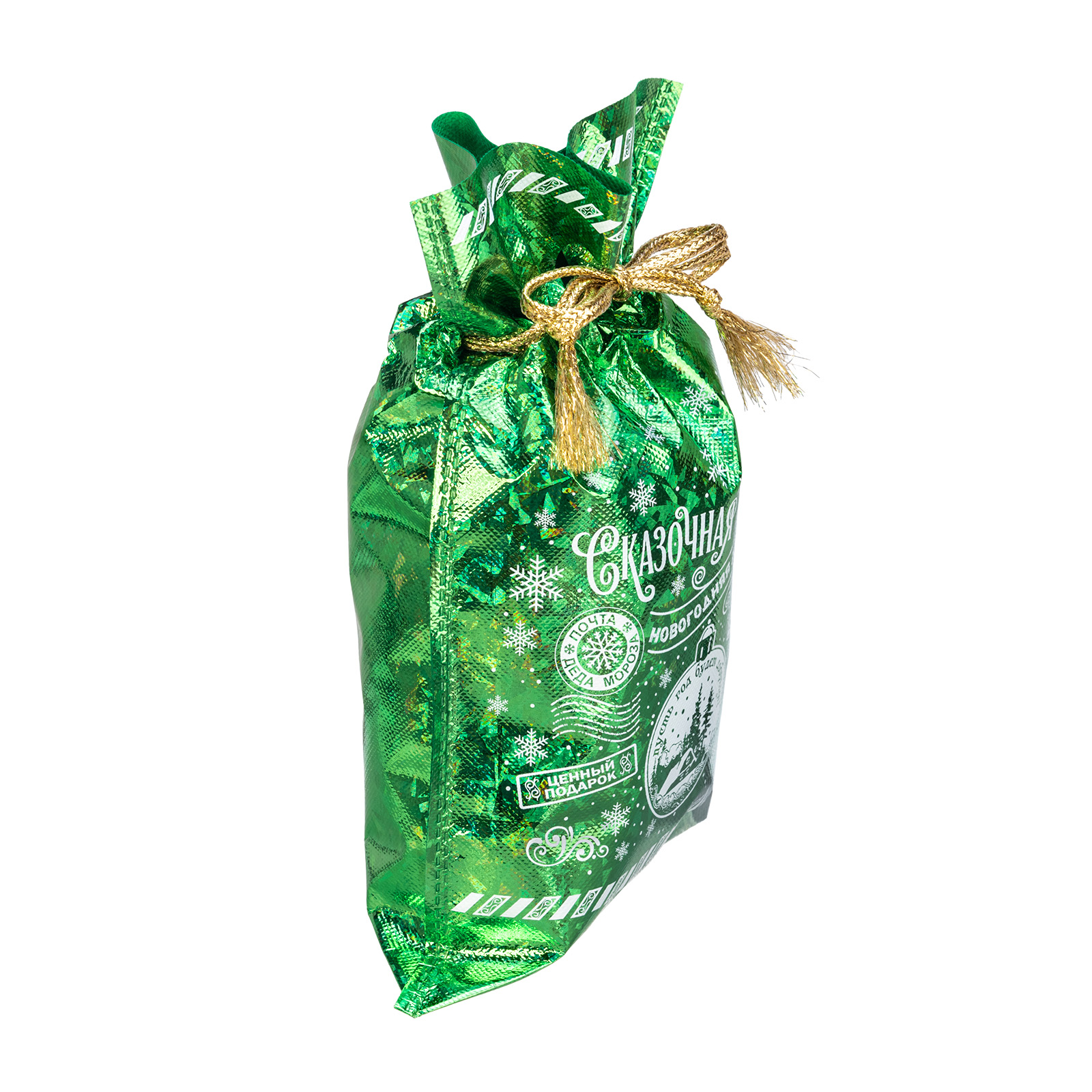 Интересный вариант новогоднего подарка – «Мешок Сказочная почта». Отлично подойдет на подарок в 2026 году с символом Лошадь. Внутри такого презента находится кондитерский набор весом 500 граммов.