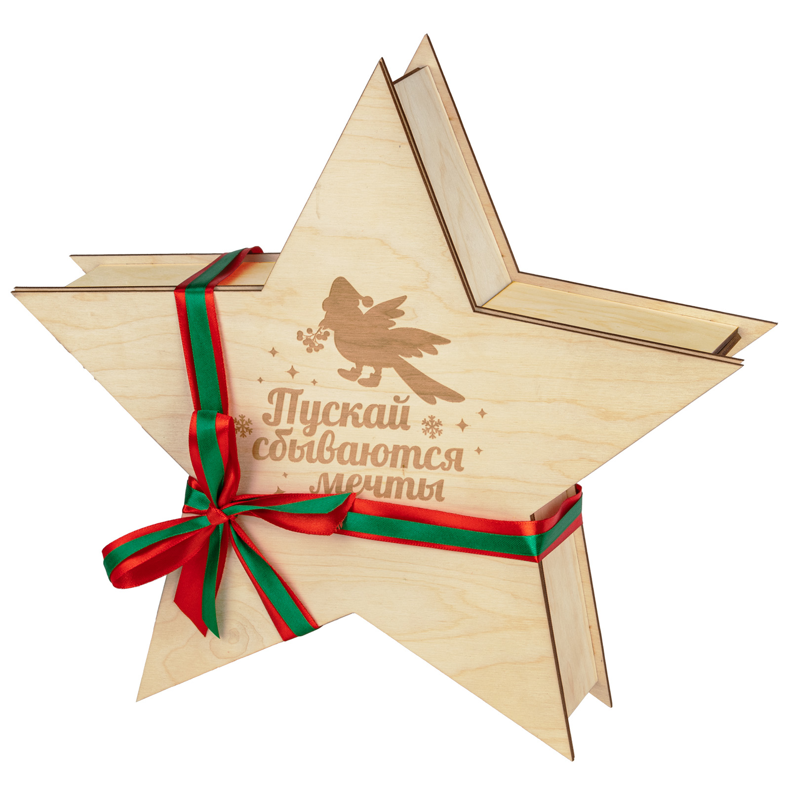 Интересный вариант новогоднего подарка – «Праздничная Звезда Легенды Москвы». Он представлен в разделе Дерево. Отлично подойдет на подарок в 2026 году с символом Лошадь. Внутри такого презента находится кондитерский набор весом 1000 граммов.